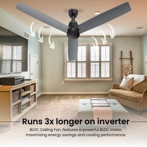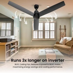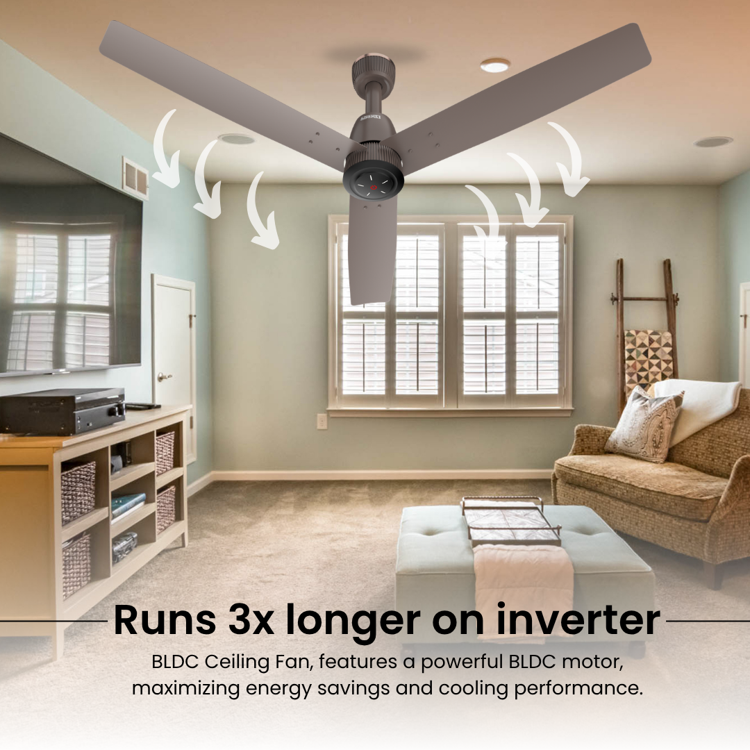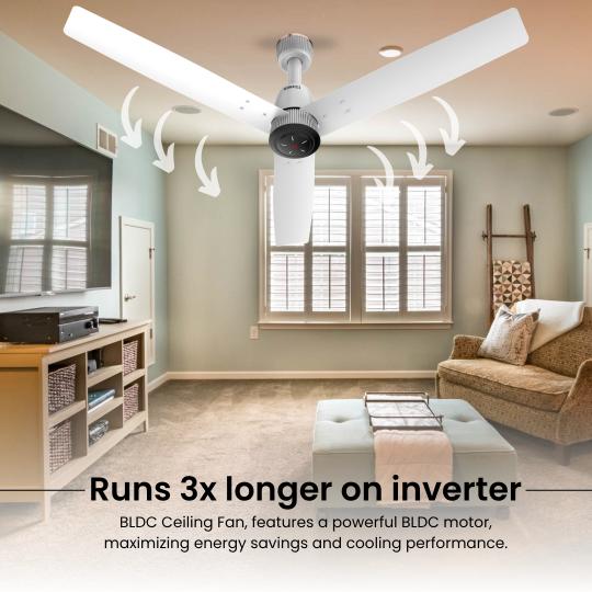Thanks to its ultra-low power consumption, the fan runs up to 3x longer on inverter backup compared to regular fans, providing uninterrupted comfort during power cuts.